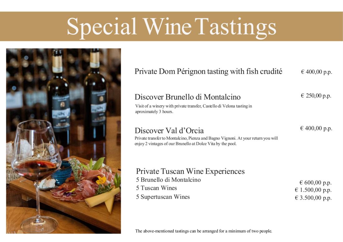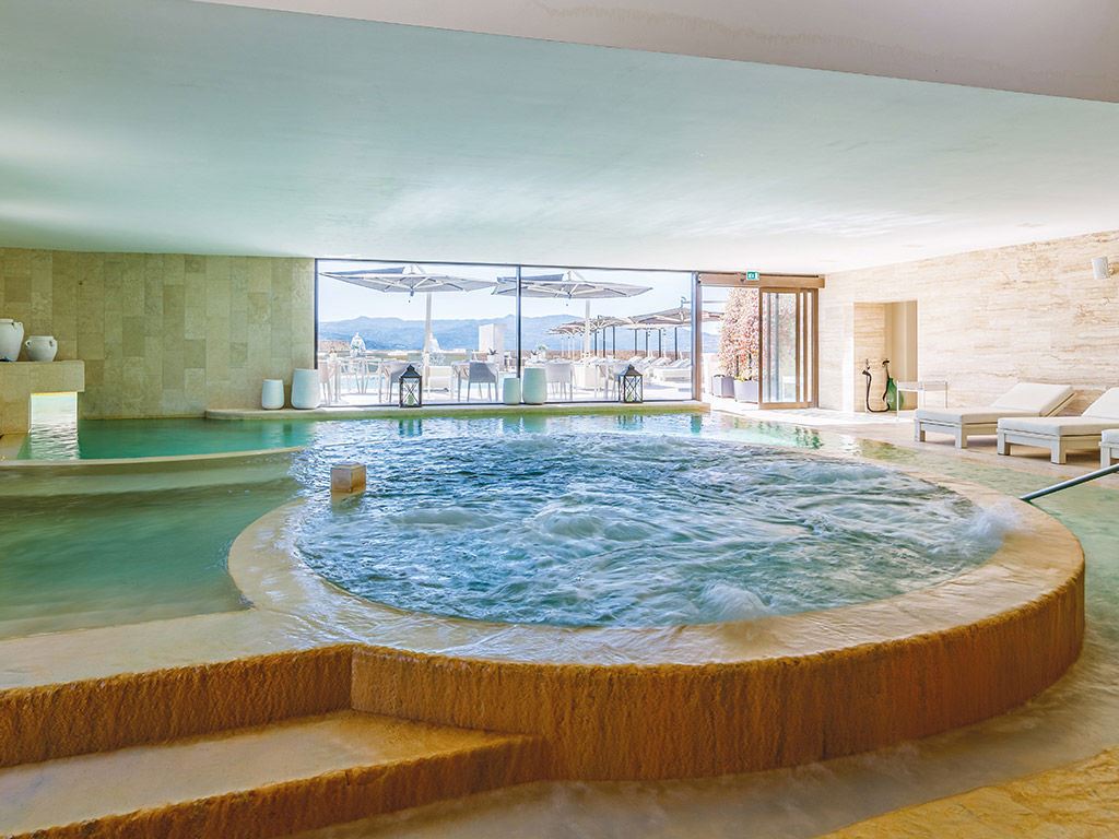 Den inre, cirkelformade poolen är sammanlänkad med de panoramiska utomhuspoolerna – en upplevelse som låter gästerna simma mellan värme och svalka medan blicken vilar på det böljande landskapet i Val d’Orcia.I spa-avdelningen finns även en saltvattenpool, två turkiska bad, en panoramabastu, emotional-duschar, ett isvattenfall och en lugn relaxavdelning där man kan njuta av aromatiskt vatten, örtteer och färsk frukt.