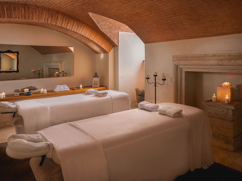 Och för den som vill göra upplevelsen extra minnesvärd – missa inte ett kvällsdopp under Toscanas stjärnhimmel. ✨Olika behandlingar, såsom massage och ansiktsbehandlingar, finns att boka direkt via Castello di Velona.