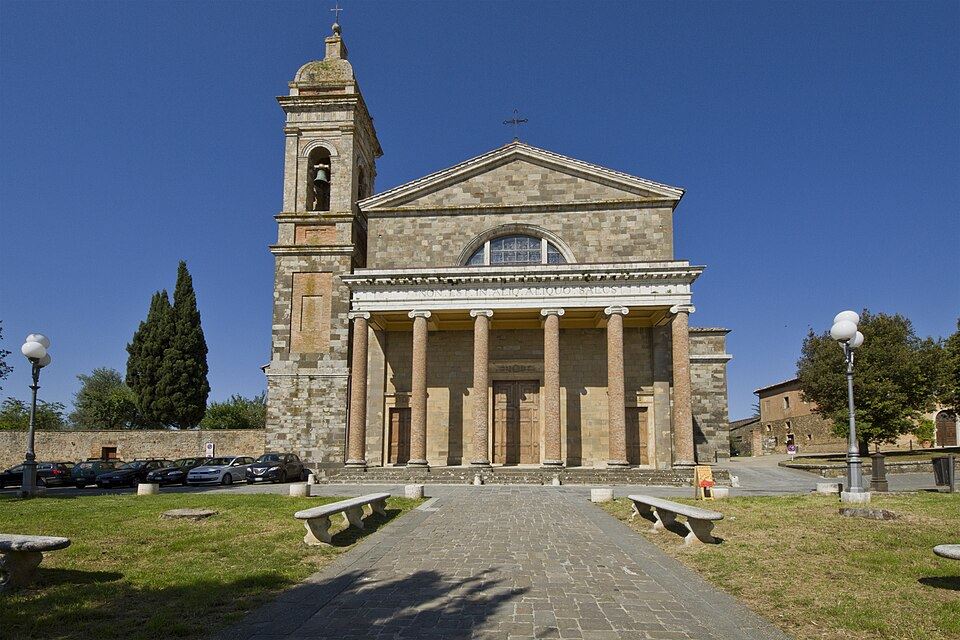 Strax utanför staden ligger den mäktiga Abbazia di Sant’Antimo, ett av Toscanas vackraste romanska byggnadsverk. Enligt legenden grundades klostret av Karl den store på 800-talet, efter att han sökt skydd här under en pestepidemi och svurit ett löfte till Gud.